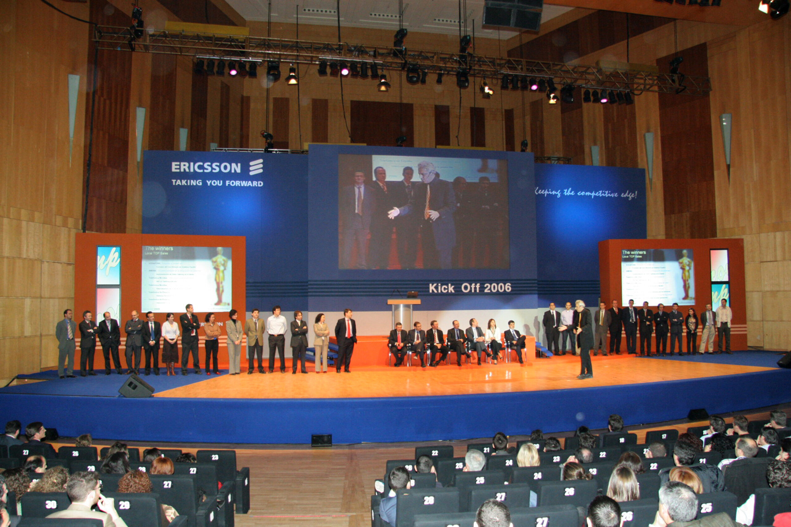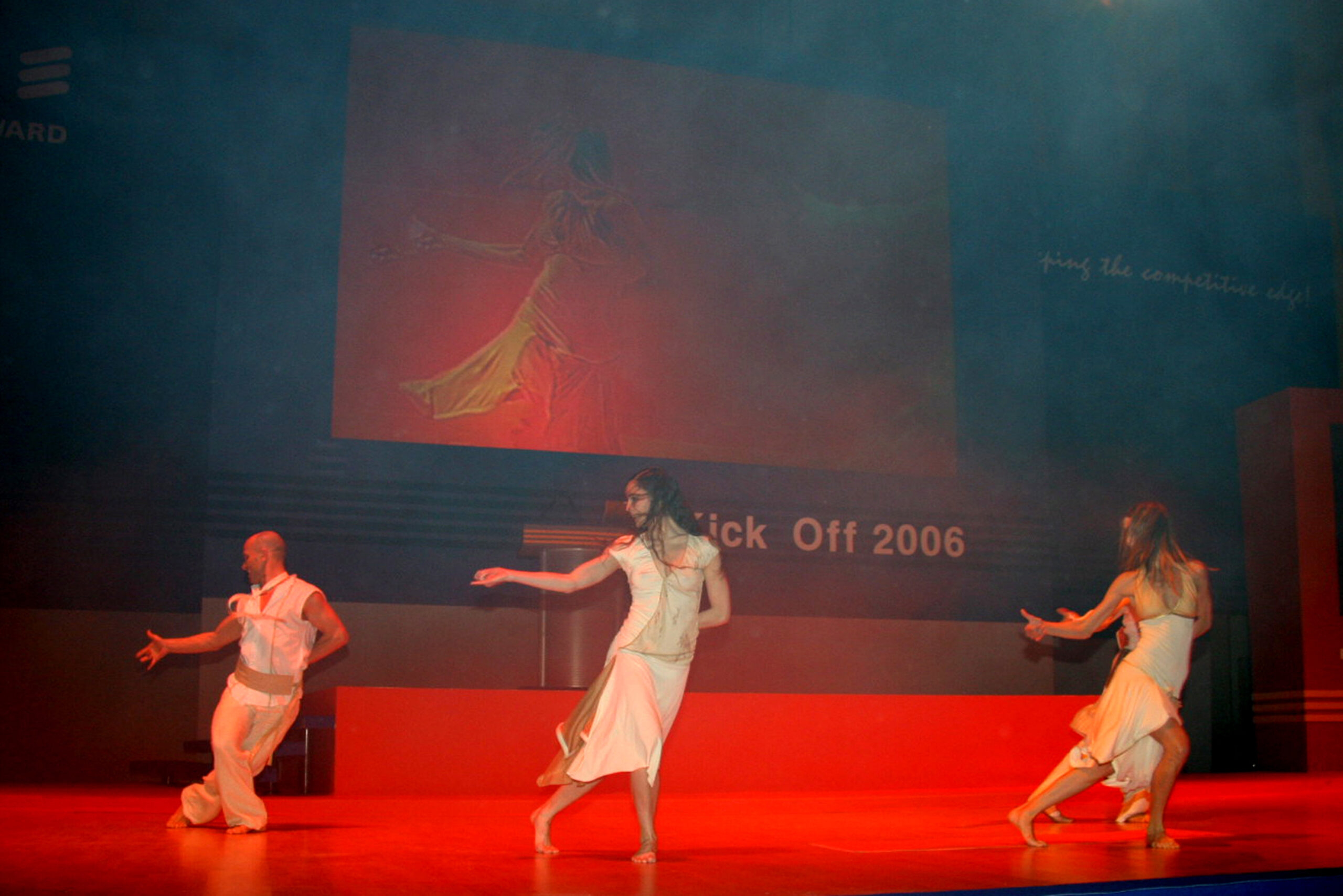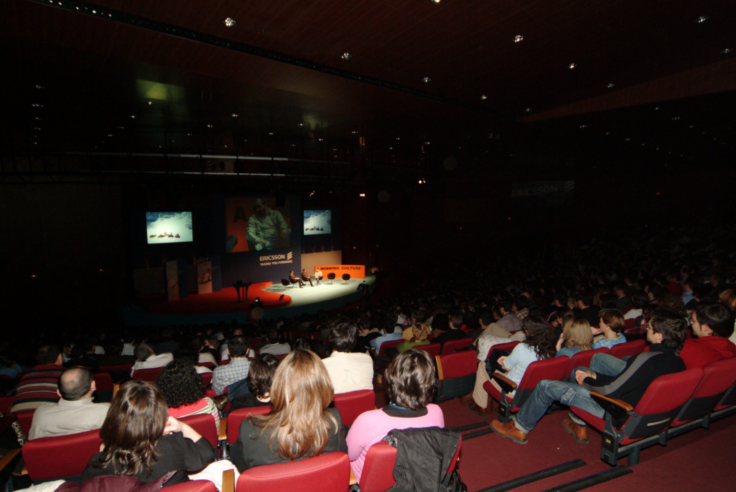 ¿Cómo seducir a una audiencia muy informada de que algo tan poco emotivo como la convergencia multimedia-teléfono móvil puede ser, además de un reto empresarial, una experiencia plena para los sentidos? ¿Cómo ennoblecer el trabajo cotidiano de una plantilla vinculándolo a una misión, como es esta de la convergencia tecnológica? Nuestra propuesta fue seducirles a través de una puesta en escena ambiciosa y a la altura del auditorio donde se combinaban los mensajes y los sentimientos. Construimos una videoperformance a 3 pantallas, con un cuerpo de 10 bailarines y una iluminación espectacular… Comenzaba con una voz en off “La evolución no es ningún sueño…” Y terminaba “tal vez seamos el primer habitante de este planeta que fabricará una inteligencia o ser artificial destinado a sucederle” mientras oíamos de lejos a Hal, el ordenador enloquecido, de Una odisea del espacio. Seguro que los asistentes no la han olvidado.