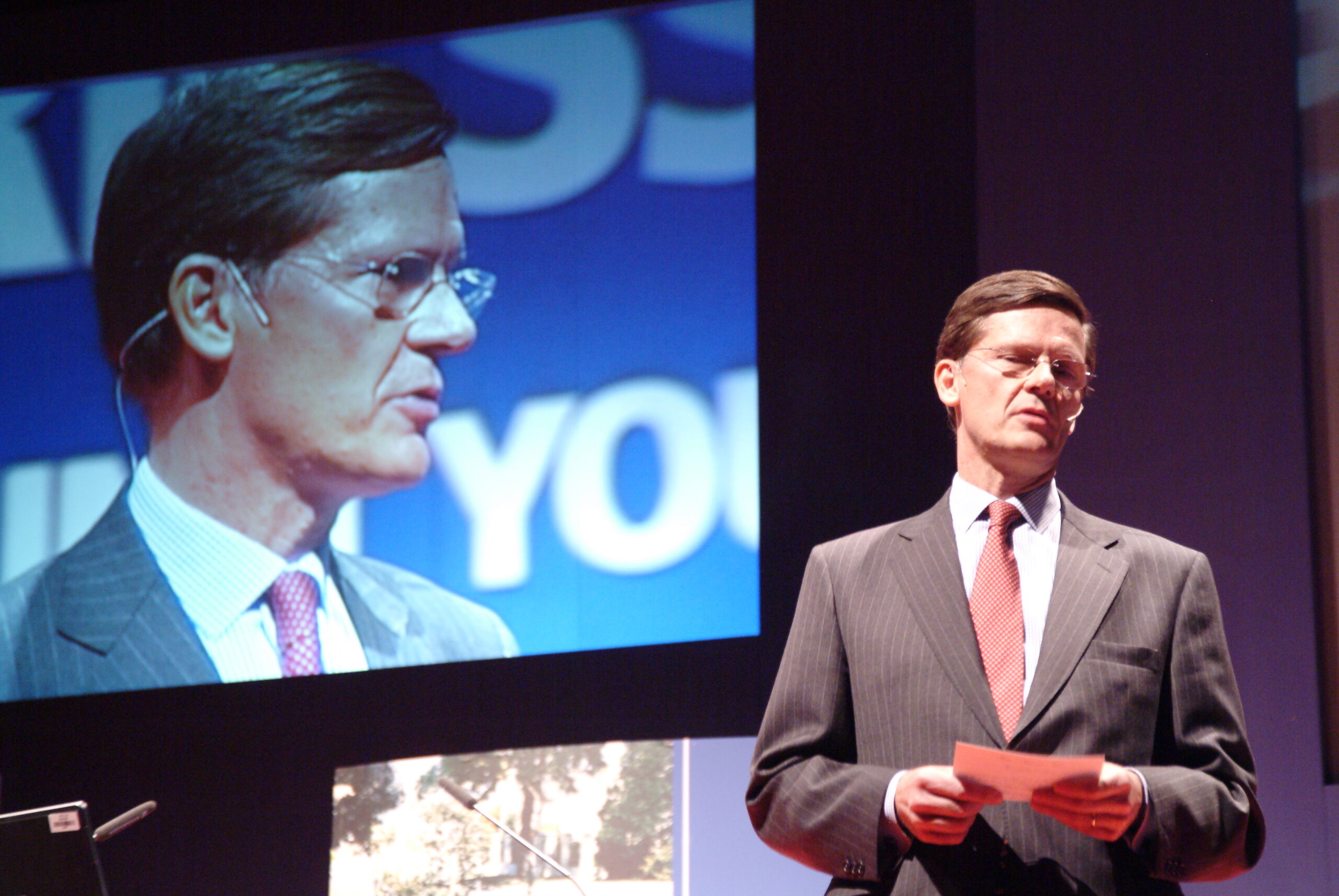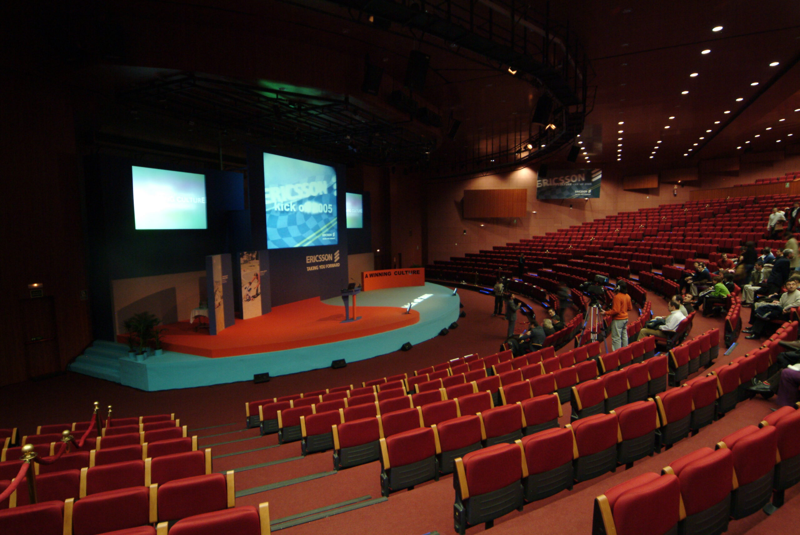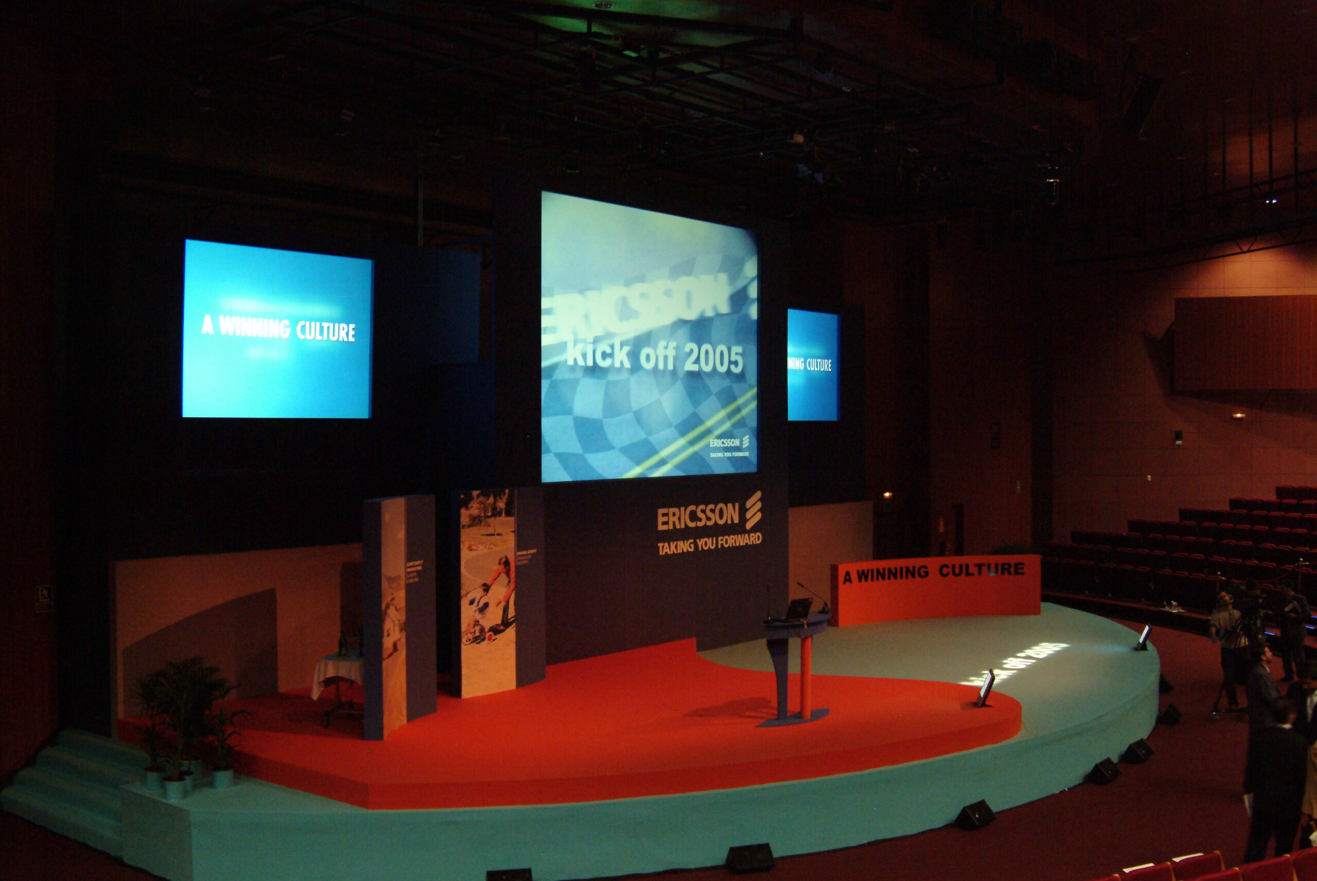 ¿Cómo seducir a una audiencia muy informada de que algo tan poco emotivo como la convergencia multimedia-teléfono móvil puede ser, además de un reto empresarial, una experiencia plena para los sentidos? ¿Cómo ennoblecer el trabajo cotidiano de una plantilla vinculándolo a una misión, como es esta de la convergencia tecnológica? Nuestra propuesta fue seducirles a través de una puesta en escena ambiciosa y a la altura del auditorio donde se combinaban los mensajes y los sentimientos. Construimos una videoperformance a 3 pantallas, con un cuerpo de 10 bailarines y una iluminación espectacular… Comenzaba con una voz en off “La evolución no es ningún sueño…” Y terminaba “tal vez seamos el primer habitante de este planeta que fabricará una inteligencia o ser artificial destinado a sucederle” mientras oíamos de lejos a Hal, el ordenador enloquecido, de Una odisea del espacio. Seguro que los asistentes no la han olvidado.