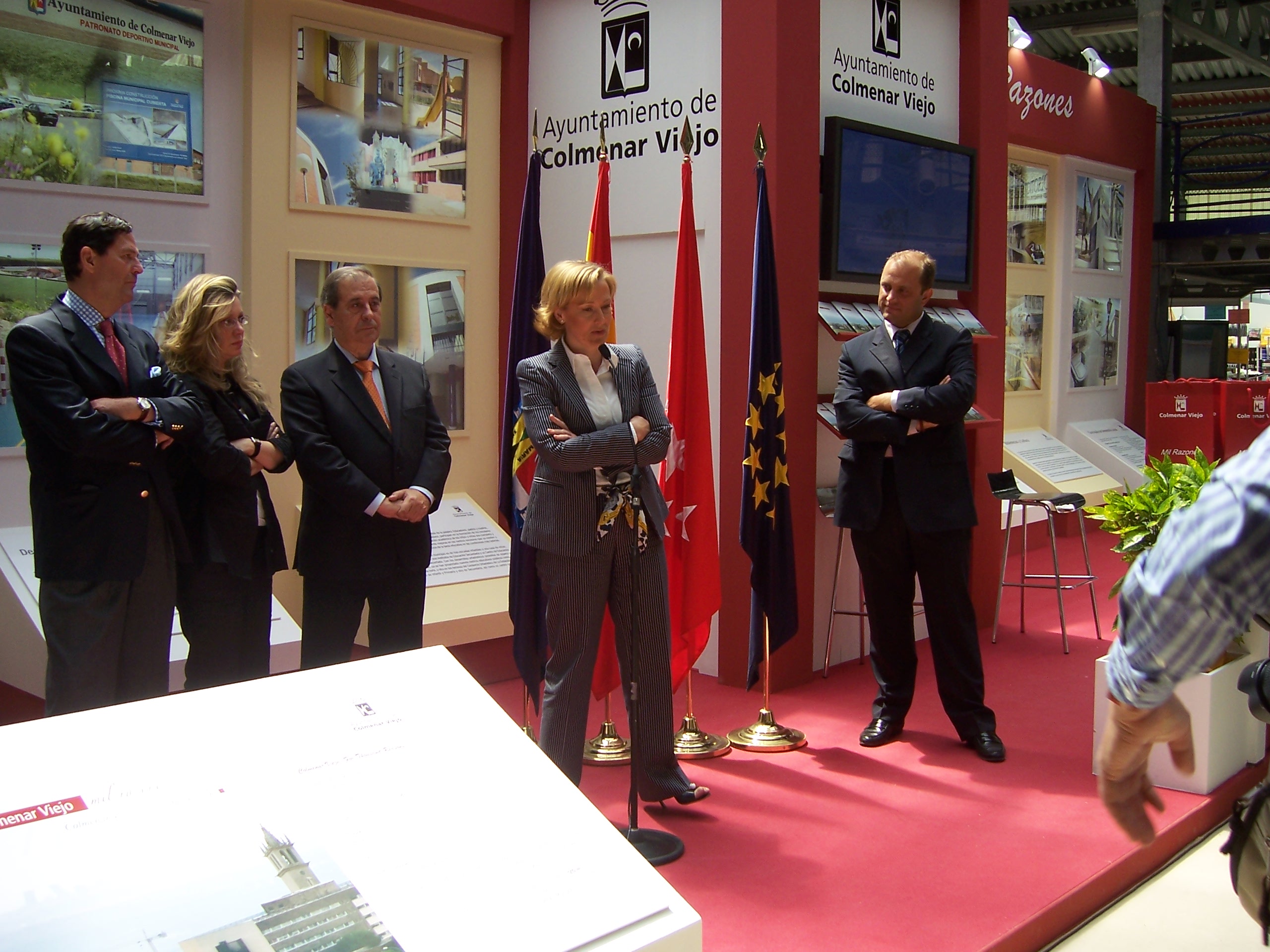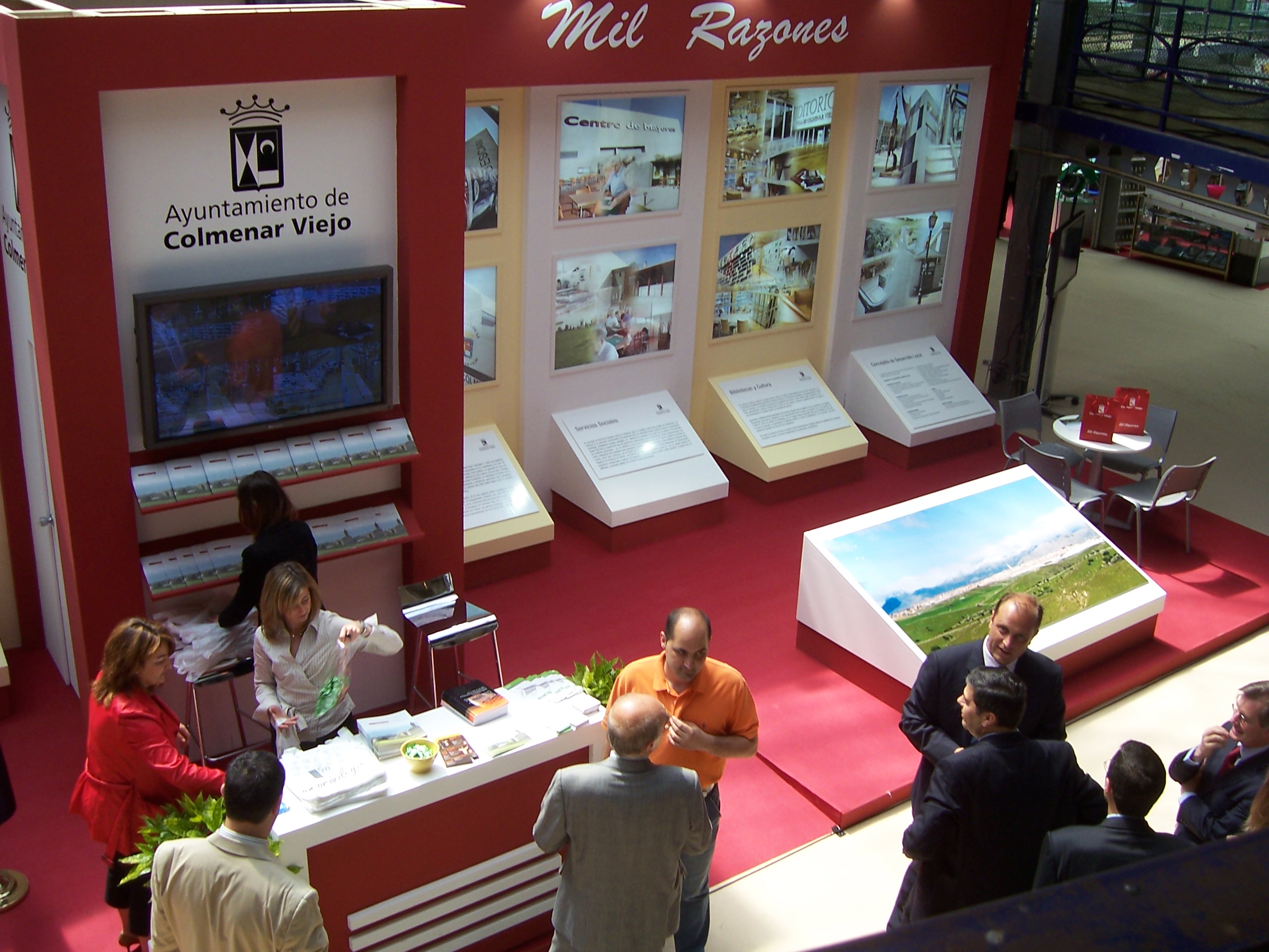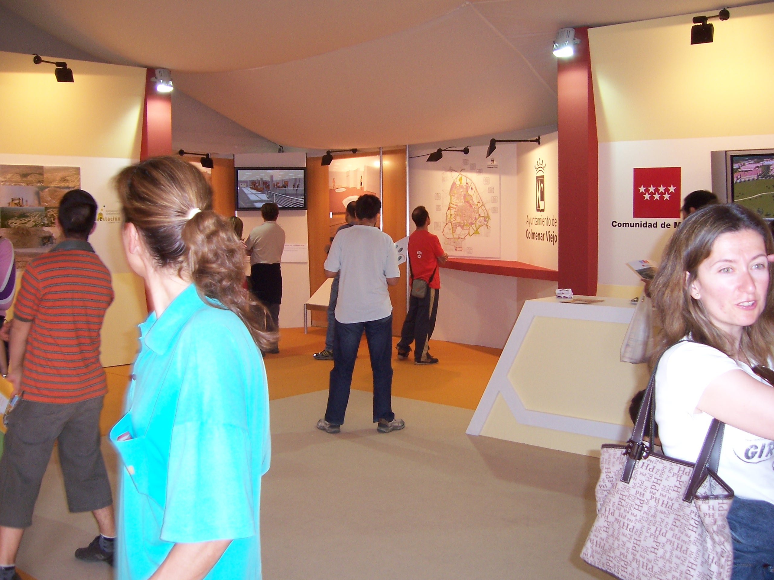 3 espacios diferentes en un área irregular de 100m2, abiertos al público, con continuidad de estilo, pero respetando su propia personalidad: el stand institucional del municipio anfitrión, un área independiente, la de la contrata del área de servicios de limpieza, un plan de difusión de tecnologías web perteneciente al Plan Avanza. En el caso de éste último la instalación sirvió como auditorio para la presentación del proyecto a la prensa, en el caso de los servicios de limpieza (CESPA) contemplaba la celebración de talleres infantiles de reciclado, en el caso del ayuntamiento, sin duda uno de los más visitados de la feria, se planteó una construcción vanguardista que rompía con la tradición de representar a la institución con aire anticuado. Propusimos diferentes y atractivos contenidos: la memoria emocional del municipio a través de una exposición fotográfica, un paseo que permitía presentar el municipio como ciudad moderna y equipada al visitante y una exposición de piezas de alto interés arqueológico. En el centro de todos los tres stands sobresalía una columna con el escudo municipal.