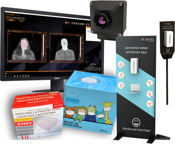 - Productos tales como: mascarillas, protectores faciales, termómetros, dispensadores, higienizantes.