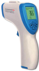 - Termómetro sin contacto por infrarrojos que mide la temperatura de manera rápida, precisa y fiable.